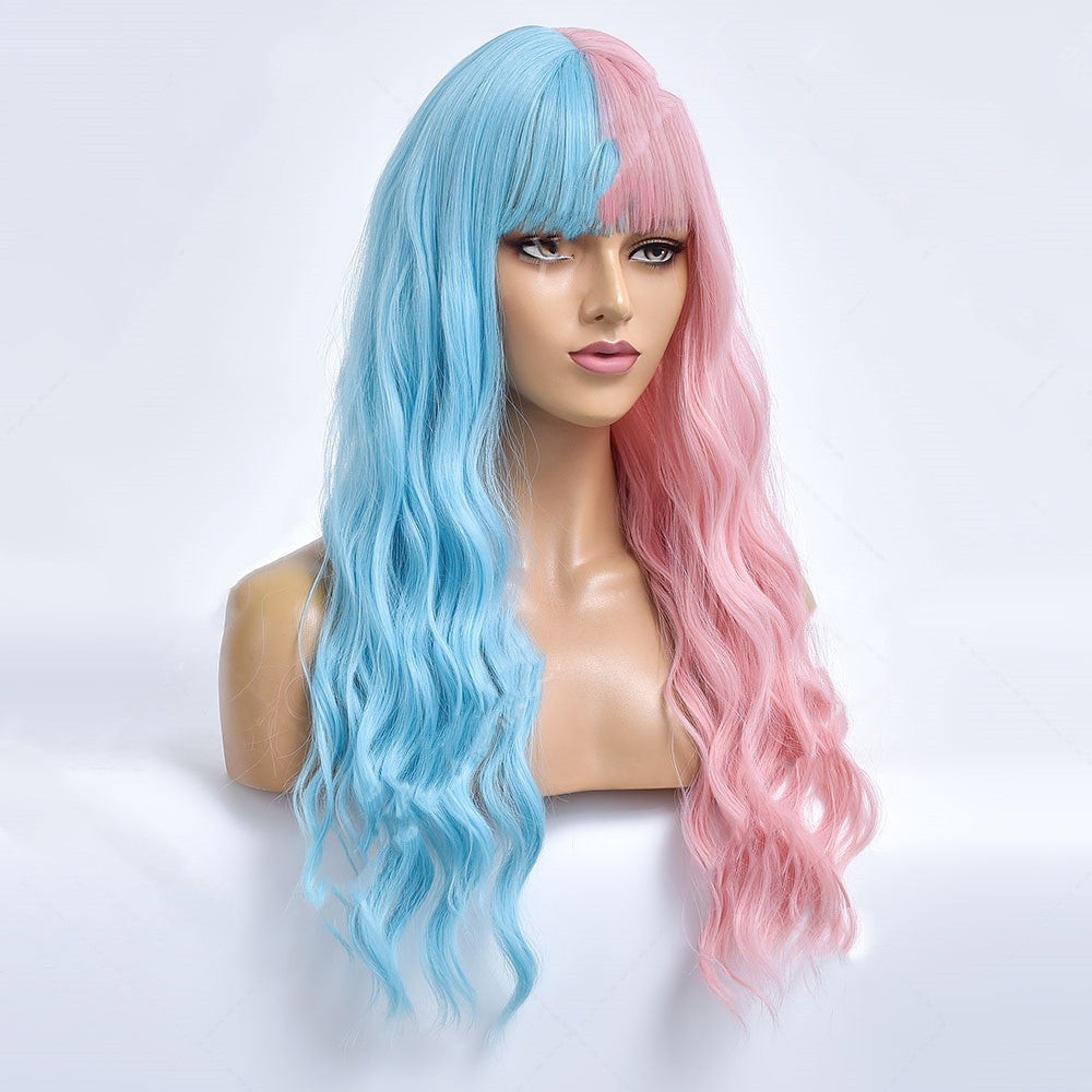 Women's Blue Pink Long Curly Hair Chemical Fiber Wig